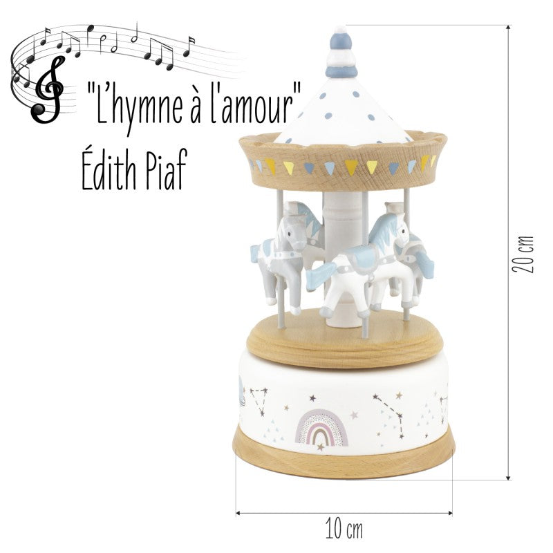 - Acompañado por una caja de música que reproduce la encantadora melodía "Himno al amor" de Edith Piaf.