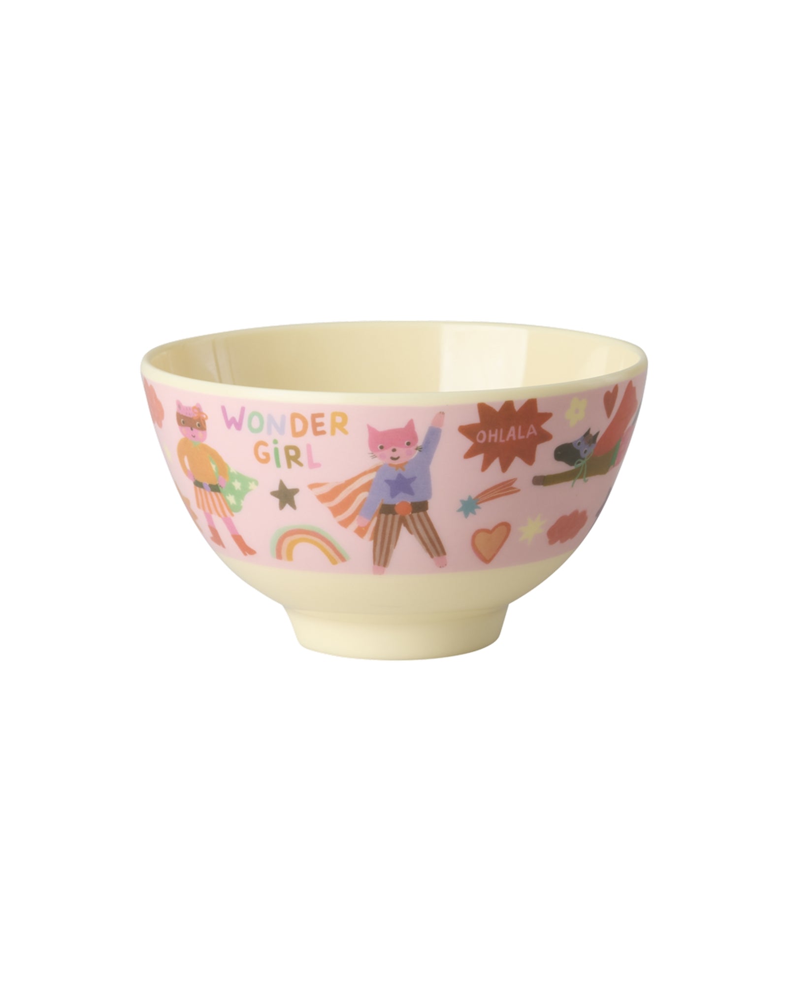 Increíble bol pequeño con super héroes, estrellas y corazones ... ¡llamamos este estampado "Hero" (Héroe)! El bol está hecho de melamina es un material duradera e ideal para el uso diario por su resistencia y fácil limpieza. Ten en cuenta que el bol es perfecto para verduras y caramelos pero que no es apto para el microondas.
